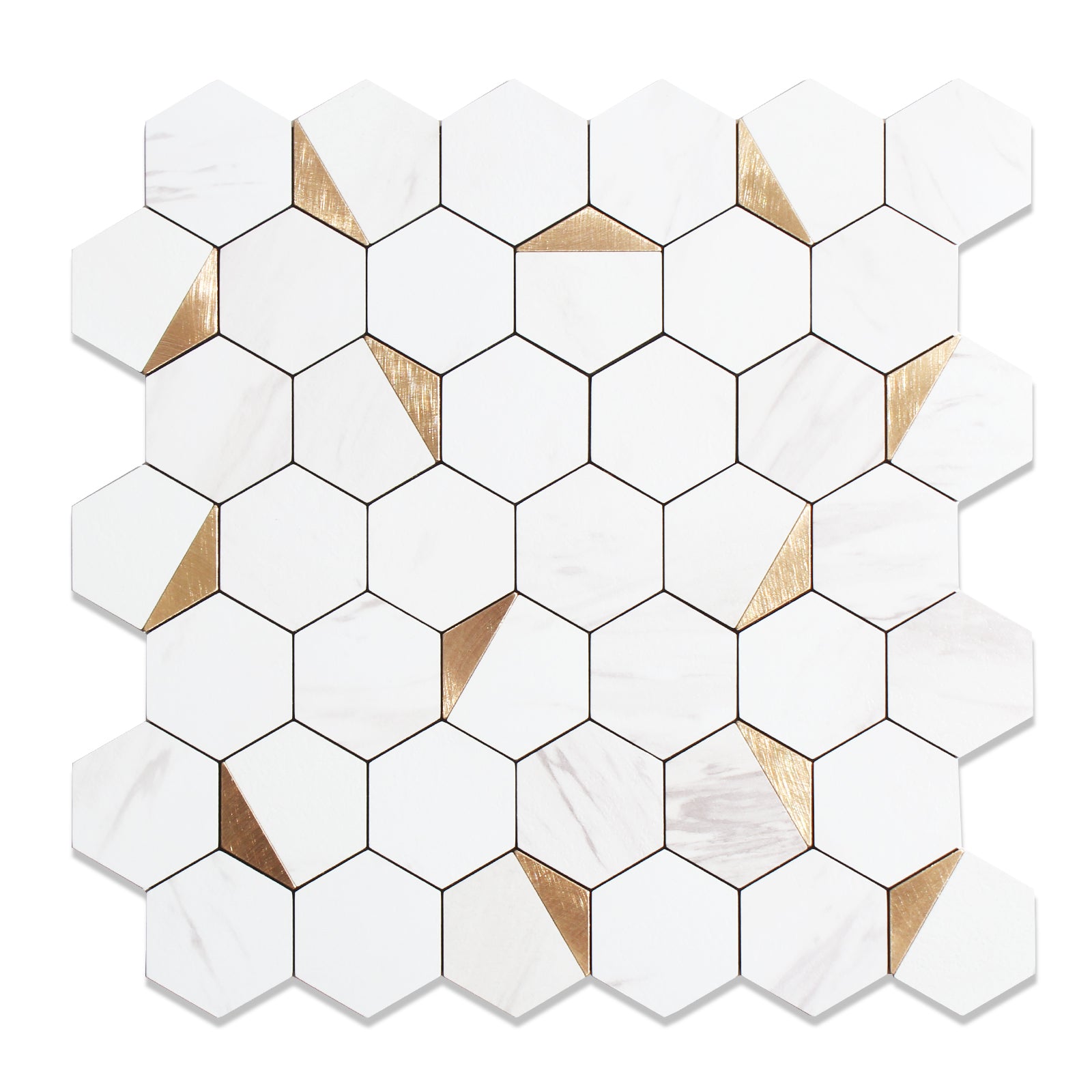 12" X 12" Beige Champagne Peel and Stick Stone Tile Metal Mixed Backsplash