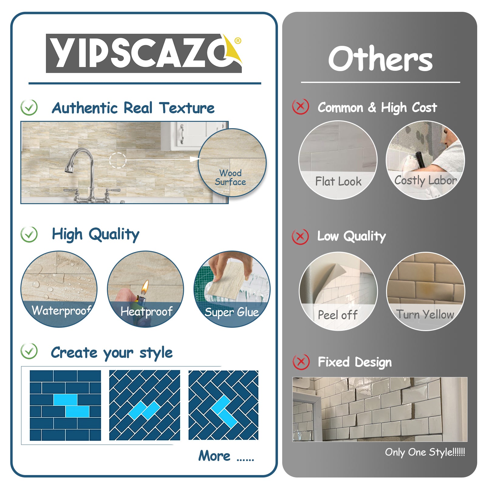 Yipscazo peels and stick wood tile is the real tile, not wallpaper or 3d-gel sticker. It is lightweight and flexible and can be easily cut by basic tools. Simple and effective to upgrade your kitchen and bathroom by yourself, suitable for any DIY private project. Shop More patterns and designs of YipscazoPeel and Stick Wall Tile.