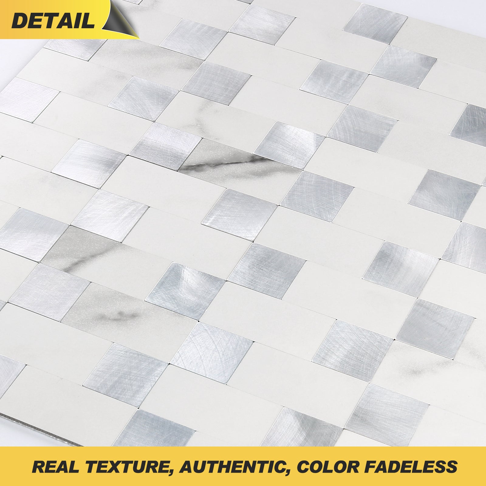 12" X 12" Marble White mixed Metal Tile Backsplash Peel and Stick Tiles