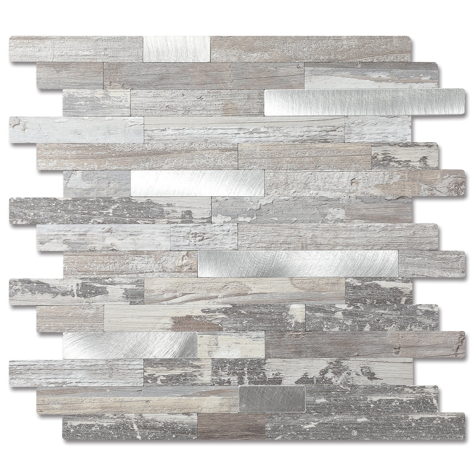 12" X 12" Light Rustic Peel and Stick Wood Backsplash Premium Linear Blend Tile