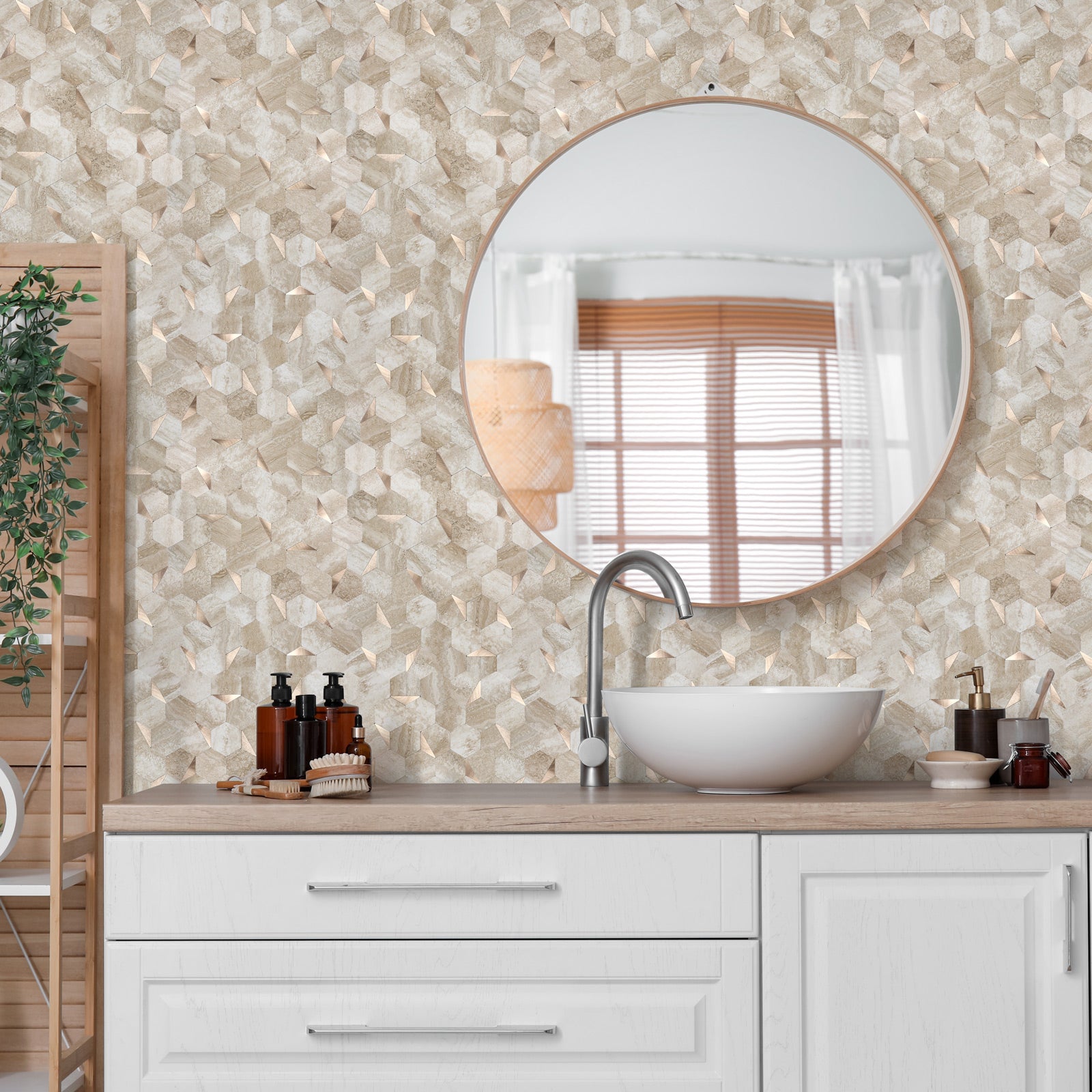 12" x 12" Hexagon Tiles Peel and Stick Backsplash Beige Slate