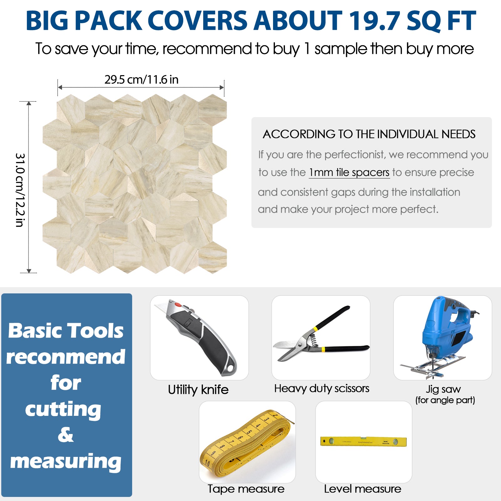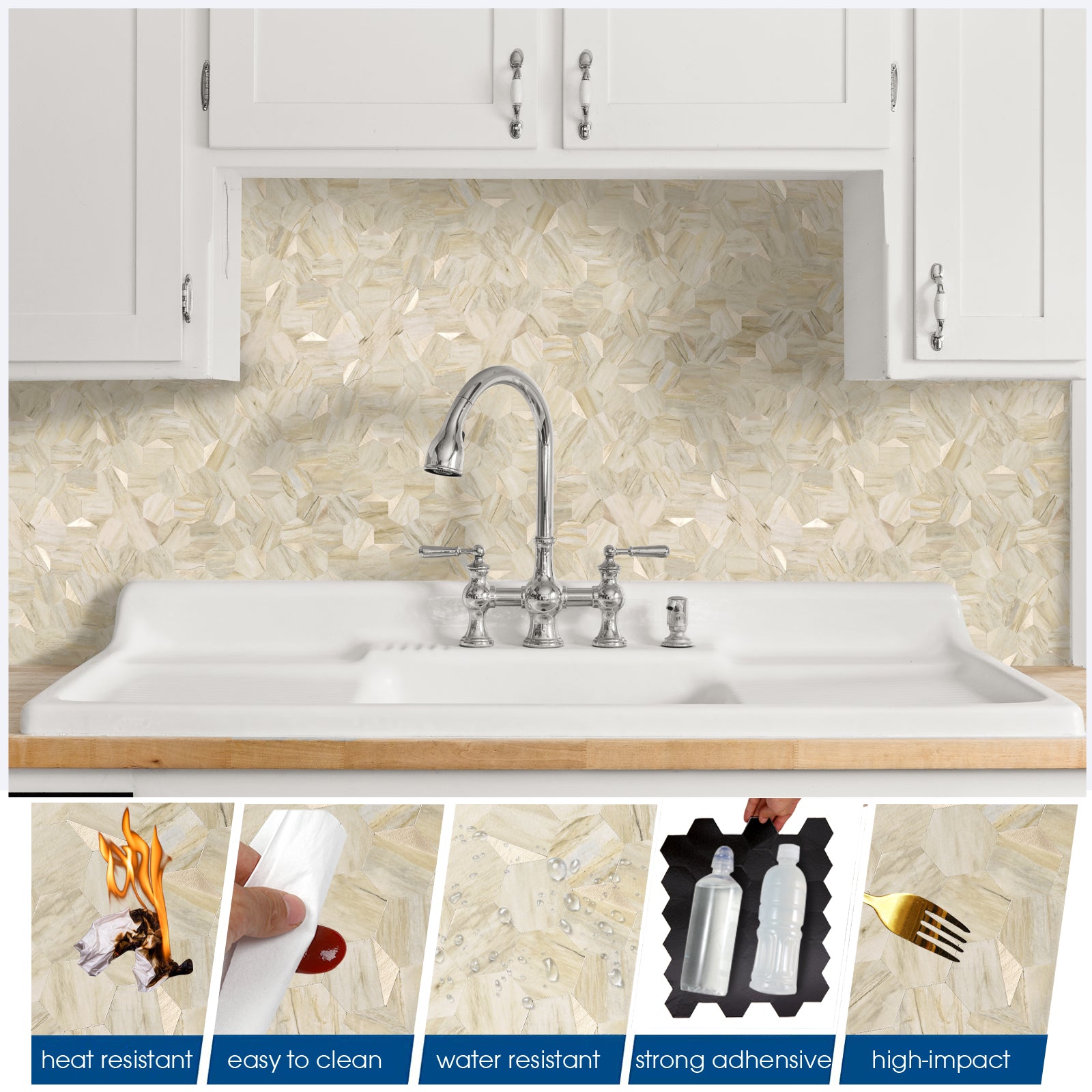 12" x 12" Hexagon Tiles Peel and Stick Backsplash Slate Beige