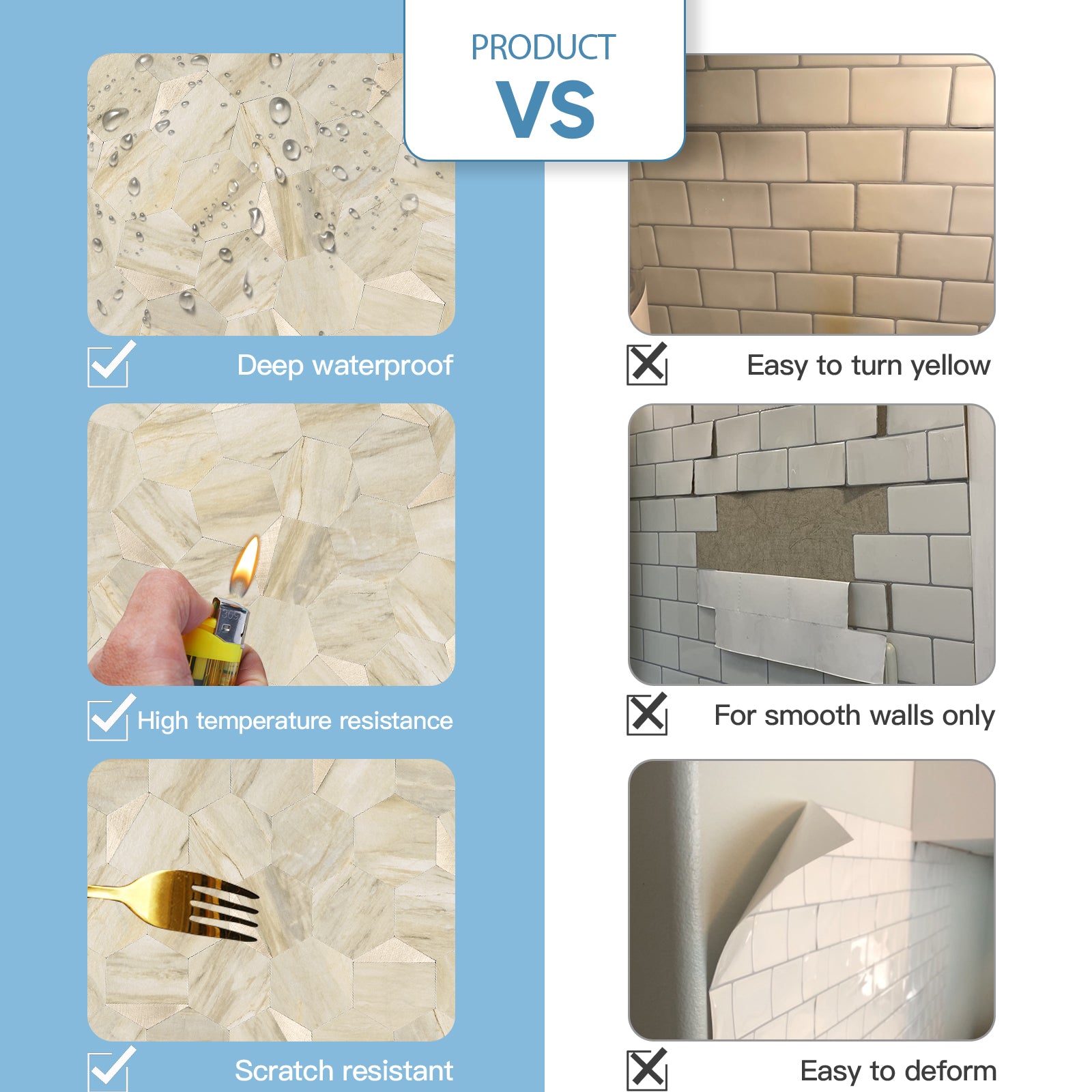 A1: Yes. Our adhesive wall tiles are heat-resistant. In long-lasting usage, we recommended keeping 12'' away from the center of the stove and fireplace.